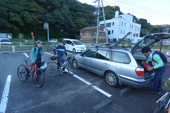 朝4時にお店出発、7時過ぎに白浜駅の横の駐車場に到着