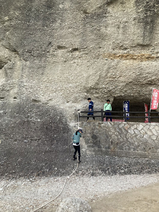 水族館の前にあった洞窟からロープで海岸へ。