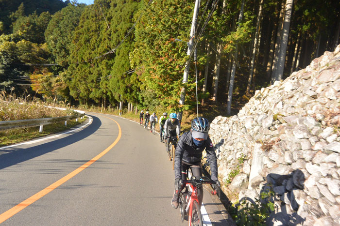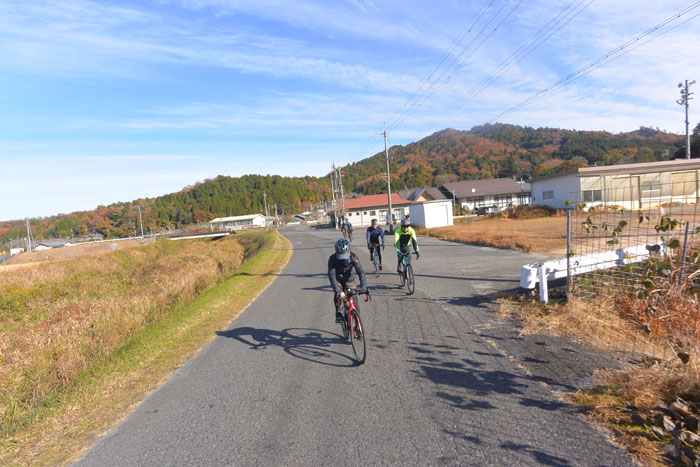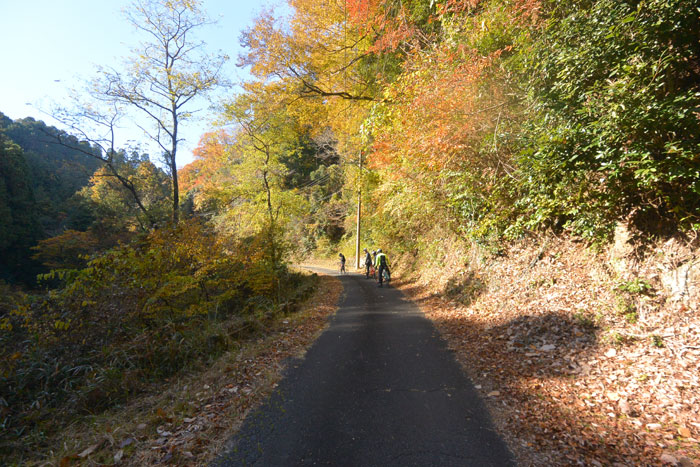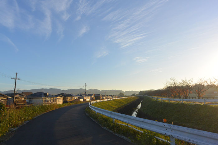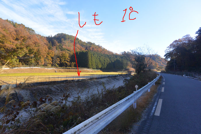 で、木津川を越えてから緩い上り坂になるので体感的にあったかくなるはずですが、谷間なので朝陽が当たらないためか、ずっと気温が低いままでした。