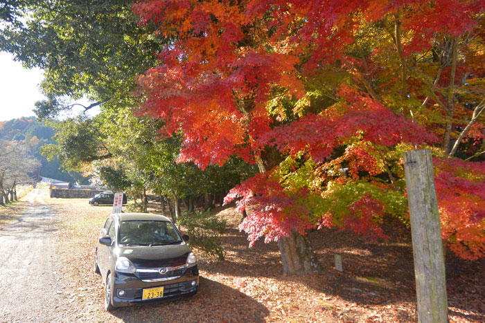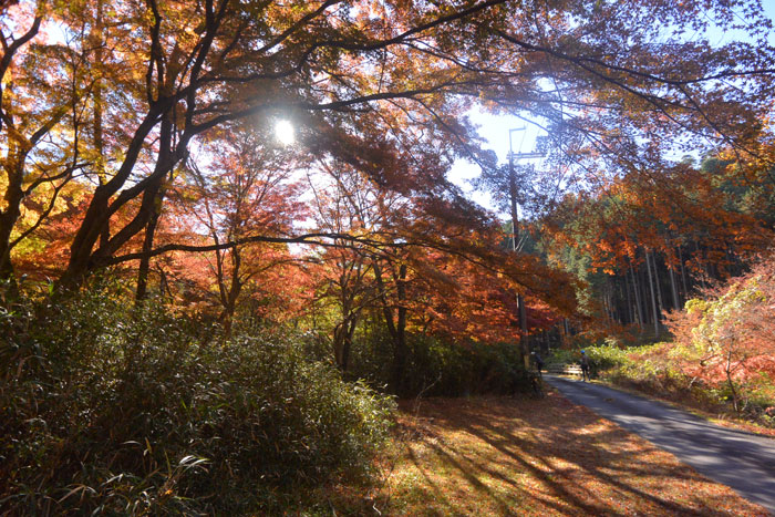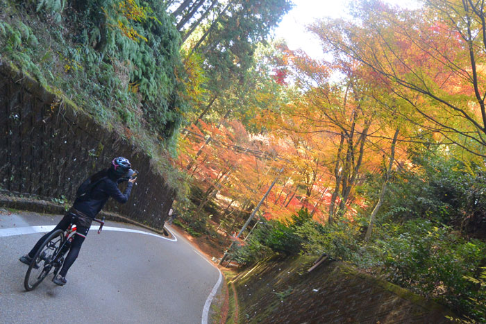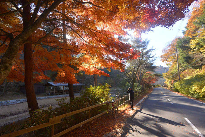 前回もきれいだった峠近くのカエデはまだまだきれいだったので止まって写真を撮りました。見事な紅葉です。