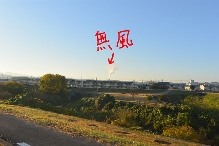 風は無風。冷え込むには良いコンディションでした。いつも風向きはサイクリングロードから遠くに見える奈良清掃センサーの煙を見ています。