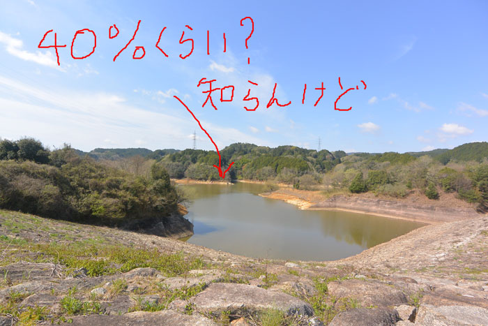 坂を上り切って、ダムを覗くと、期待していたよりも全然水が溜まっていませんでした。まだ無駄遣いは慎まないといけませんね。
