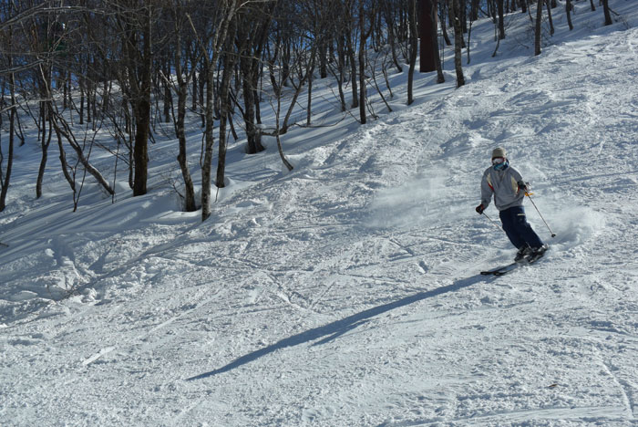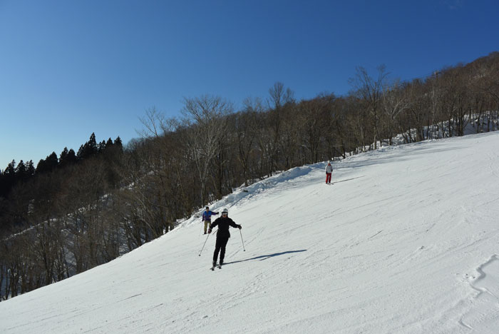 シルクロードは自転車屋ですが、毎年イベントとしてスキーに行っています。 今年は雪が少なくてスキーができるか心配でしたが、寒波が来ていっぱい降ってくれたので、なんとか全面滑走可能になりました。 雪は少な目でがりがりでしたが、天気が良く景色は最高でした。 やっぱたまにはスキーもいいですね。雪があるだけでテンションが上がります。 いつもMTBでお客さんに怖いところも「行ける行ける♪」と気軽に言っていますが、今回は立場が逆転して、恐怖のコブコースに連れていかれて涙目になりました。ガリガリなんだもん。 おかげで今日はすさまじい筋肉痛です。いたた・・・でも楽しかった!