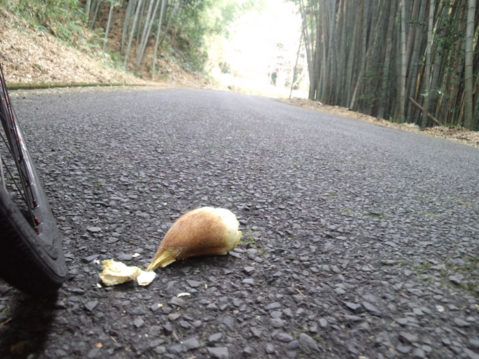 写真を見てわかると思うのですが、なんとタケノコが道に落ちていました。なんで道にタケノコが!?というわけではなく、もうタケノコが出てくる時期なの!?という驚きです。