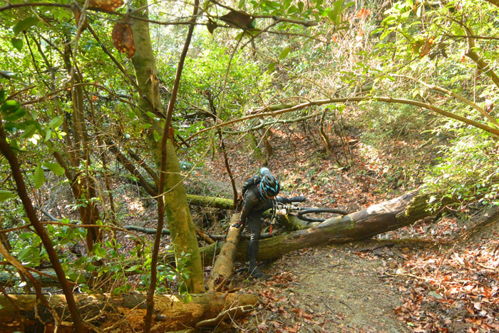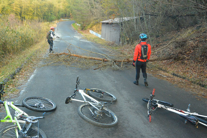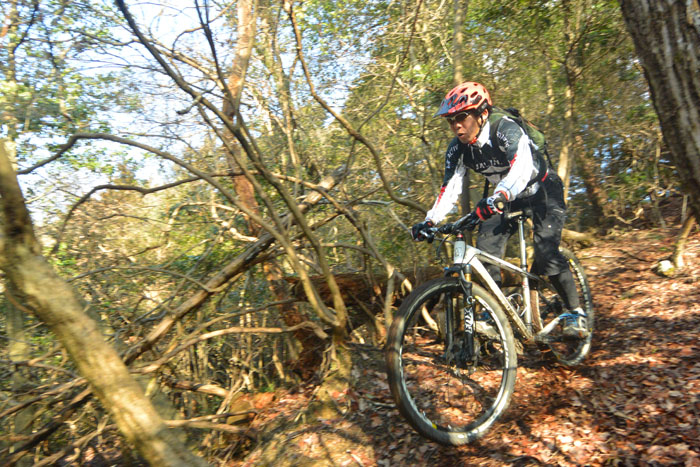 で、今週もMTBで山走りだったのですが、昨日の雨で路面はウェット状態でした。