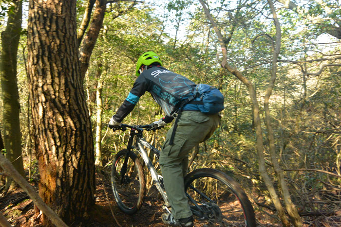 ウェット状態での山、特にシングルトラックは根っこがつるつるしていて、路面が緩んでいるので山を傷めてしまうというわけで、普段のシングルトラックのコースは走りませんでした。