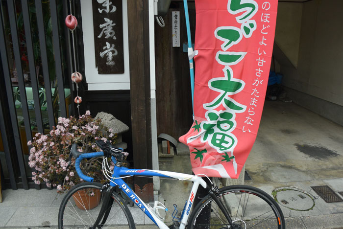 今日は奈良に用事があったので、自転車でプラプラ行ってきました。 今日はむちゃくちゃ寒く、風もきつくてどうしようか悩みましたが、悩んでいる間になぜか自転車でこぎ出していました。 行きしなは追い風でルンルンだったのですが、帰りは向かい風で大変でした。 奈良まちに行ったので、何もなく帰るのもなんなので、おいしい和菓子屋さんでイチゴ大福を買って帰りました。 そろそろロードの朝走りもいいかもなあ。今週末はなんと20度くらいまで気温が上がるそうです。でも天気が微妙です。どうしよ。