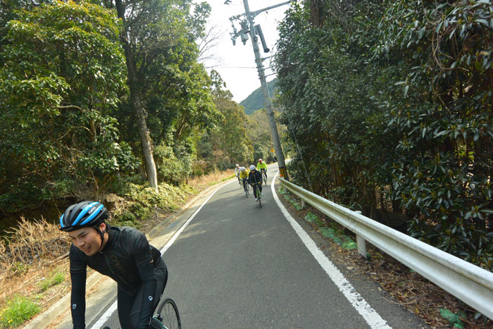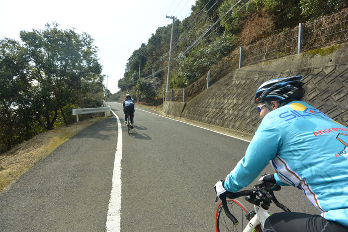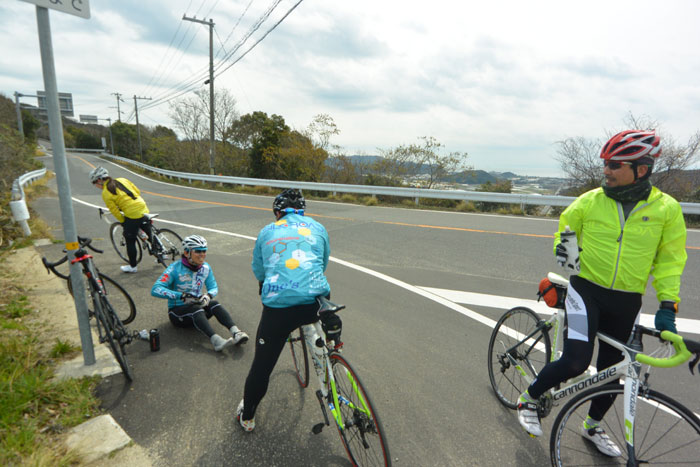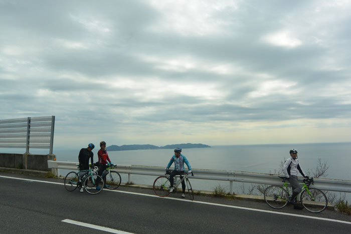 淡路島の南側からスタートして、交通量の少ない景色はいいけど坂があるコースにしたのですが、これが結構きついコースでした。スターどしてすぐだからみんな元気に行けるだろうと思ったのですが、やはり坂は坂ですね。いつも通りきつかったです。ゆるいと思って参加したメンバー、ごめん。