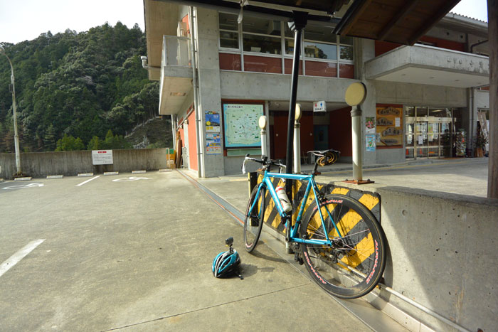 たくさんのトンネルを抜けて十津川村へ。ここでちょっと休憩しました。足湯があって老夫婦が足をつけてましたが、それに入ると再スタートがしんどくなるので、すぐに出発。