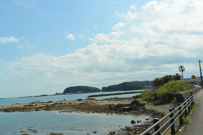 海に出ると太陽光もそれなしか南国のそれになり、今度はむしろ暑くなり前のファスナーを少しおろして走りました。気温はなんと22℃!五条では氷点下2℃だったのに。