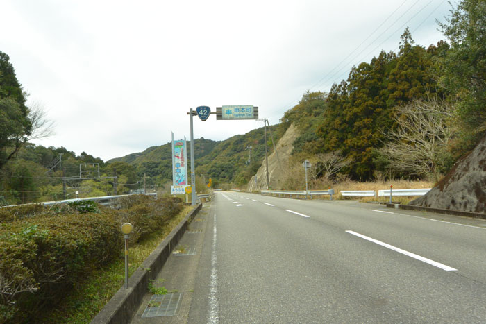 十津川を超えて一つ峠とトンネルを抜けると急に気温が高くなり、気候が変わりました。南国の気候になりました。ウィンドブレーカーを脱いで快適になったのですが、海に出るまで向かい風。きつかった。