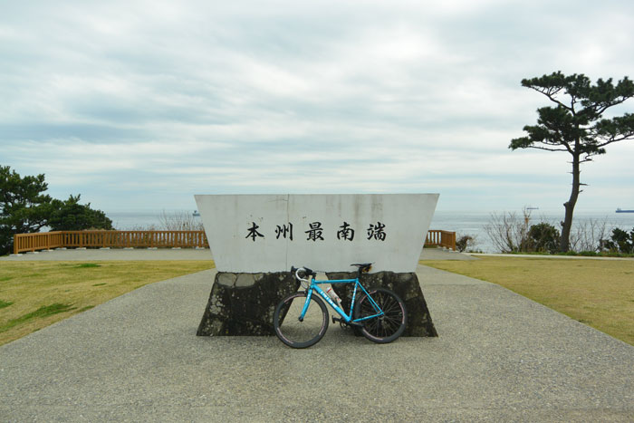 あとは潮風と波の音を楽しみながら海岸走行を楽しみながら最後の坂を上り、無事潮岬に到着しました。時間にして1時すぎ。予定より早めに到着しました。距離にして約230km。