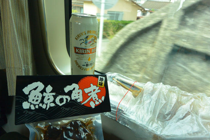 帰りは特急くろしおに乗って帰りました。輪行はいいですね。ビール飲めるし。地元名物のくじらをつまみにビールを飲んでウトウトしながら帰りました。