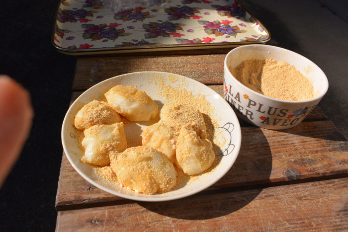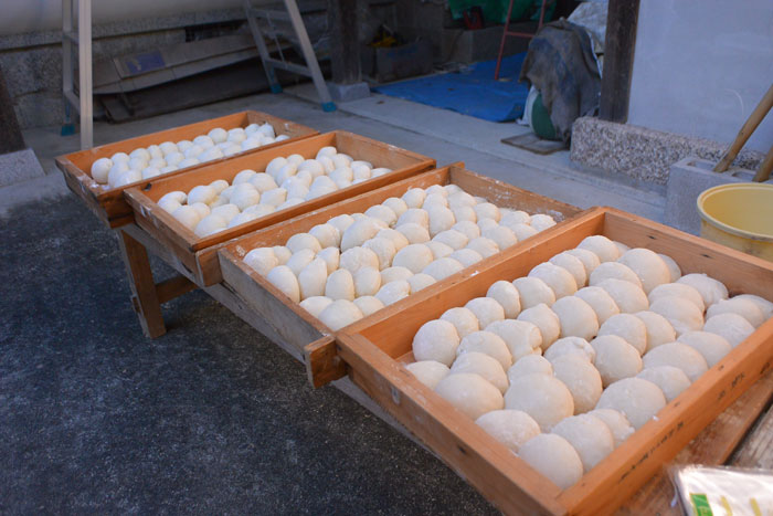 もう何度か目なのでそこそこ自分ではつけるようになったと思います。でも、はじめに餅をつくまえにもち米をぐりぐりとつぶす作業は、いつまでたってもうまくいきません。