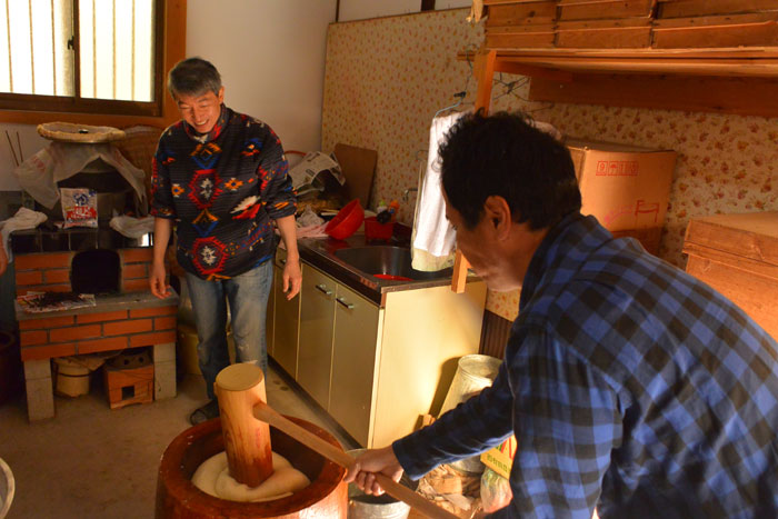僕はまずはお客さんのおうち(兼業農家で、お米を作っていて、もち米も自家製なのだ。つきたてのお餅の味が最高)でお餅つきをさせていただきました。