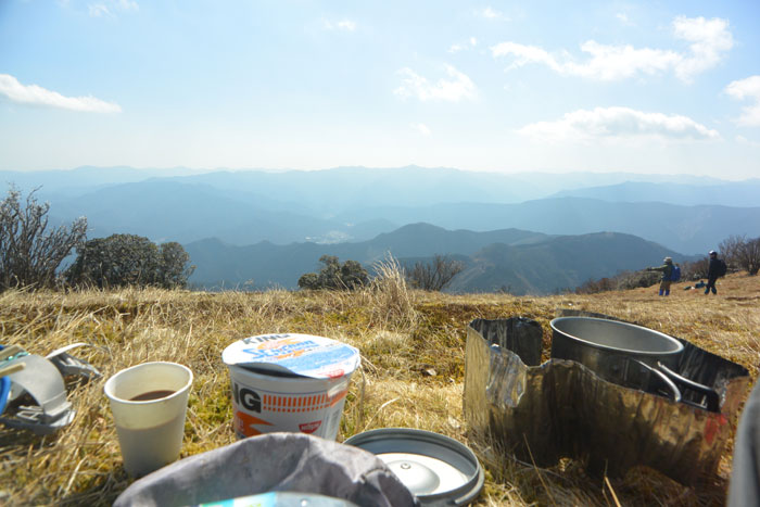 とまあ、ちょっとした楽しい山へ行ってきました。はまりますよ。青空カップ麺。