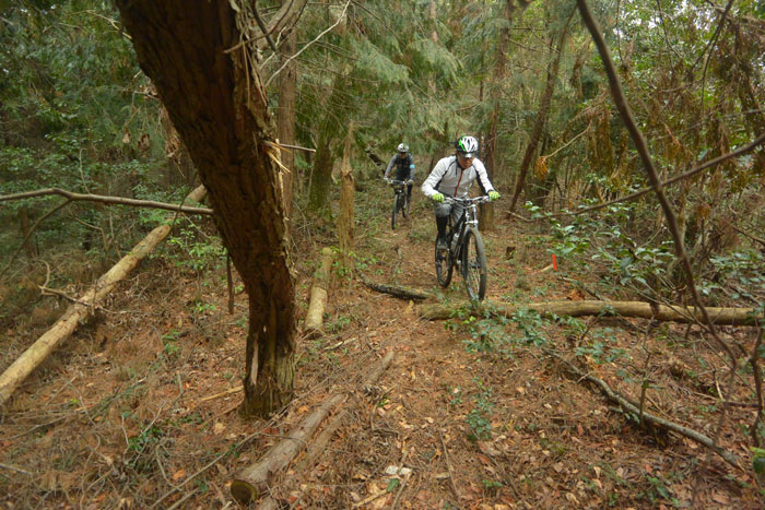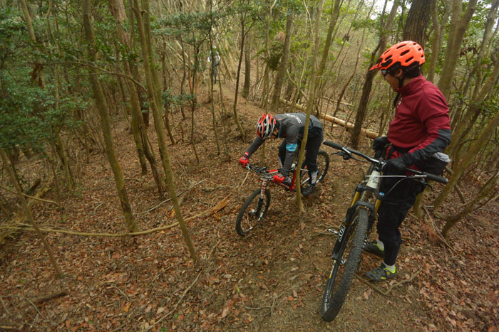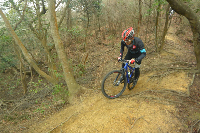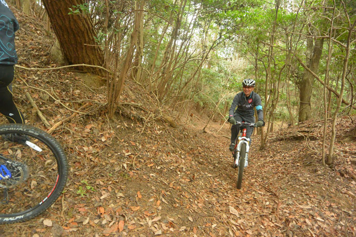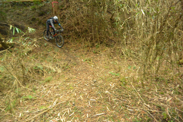 でも、僕はそんなことお構いなしにちょっと難しいコースに行くことにしました。ま、この方はスキーでガンガン飛ばす人だからMTBも同じようなもんだろう、という安易な考えで行っちゃいました。