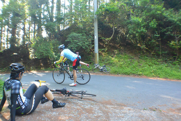 あ、その前にパンクしてしまい、みんなに追いつかなきゃ、と少し頑張り気味に走ったのも原因かも。