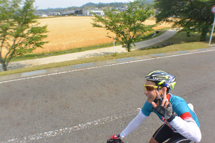 前半は美しい茶畑、中盤で美しい田んぼの風景、そして後半に美しい小麦畑。このコースはすこし距離がありますが、今の時期最高かもしれません。