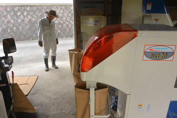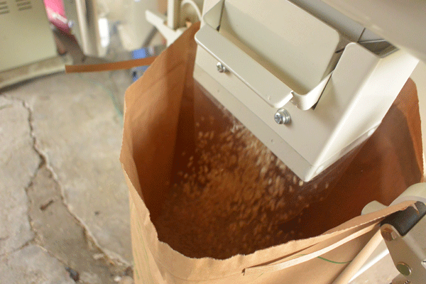 それだけなんですが、なかなか大変な作業で、袋が満タンになってピーピーなっては外して新しい袋をセットして外した袋をくくって軽トラに乗せて、するとまた袋がいっぱいになって・・・という繰り返しの作業の合間にはじかれた悪いお米の器がいっぱいになる前にそれ用の袋に移し替えて・・・と、昔のゲームウォッチ的な忙しさでした。(よくわからん?)