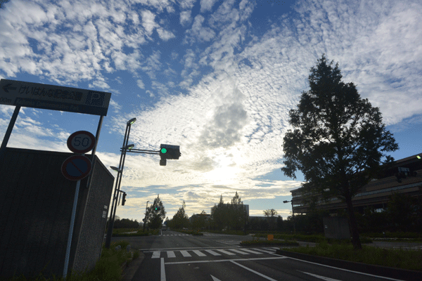 スタート時は涼しく、快適に走ることができました。空は見事な秋の空。天高くうろこ雲が朝日に輝いていました。