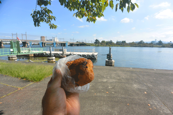 「急がば回れ」の唐橋を渡り、ほどなく目的のパン屋さんにつきました。かわいいパンやで、結構安い。
