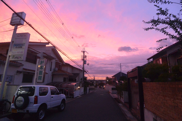 台風前の典型的な夕焼けでしたね。すごく赤くて、ちょっと怖い感じの。