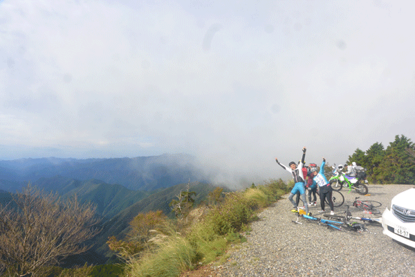 上北山村から大台ケ原まで自転車で登って、そこから靴を履き替えて、ハイキングして山頂まで行って、正木ヶ原、牛石ケ原、大蛇ーまでハイキングしよう、というイベントでした。