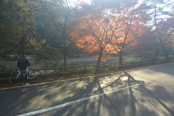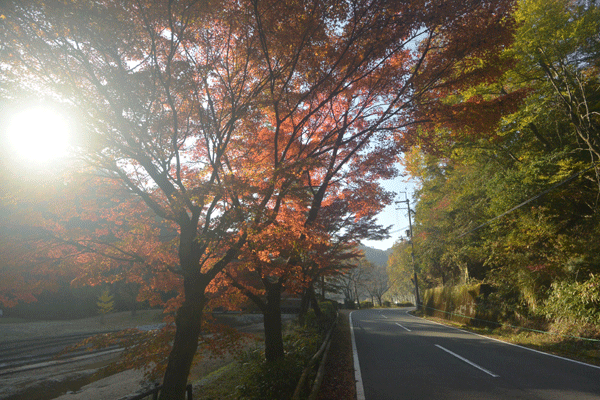 湯船のいつものカエデスポットはちょうど見ごろでした。ちょっと止まって写真を撮って、いつものお茶屋さんでお餅を食べて、それからまた和束方面へ戻りました。