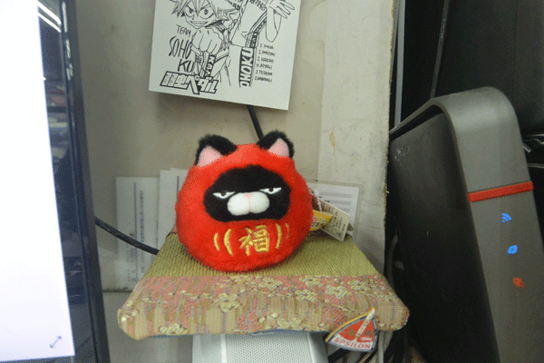 この猫は以前から持っているぬいぐるみの「福だるまバージョン」