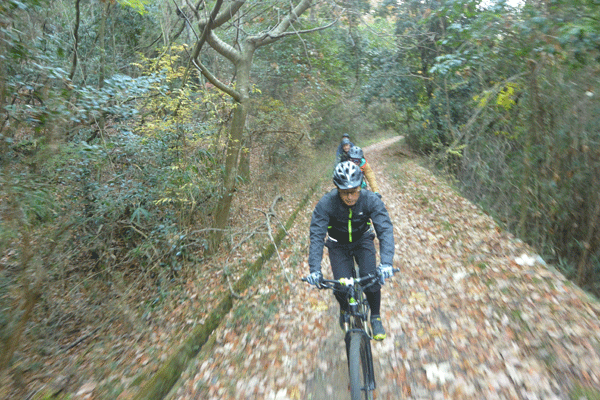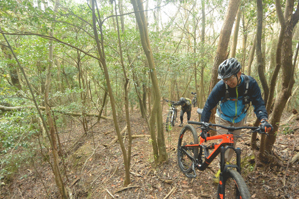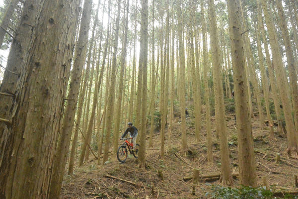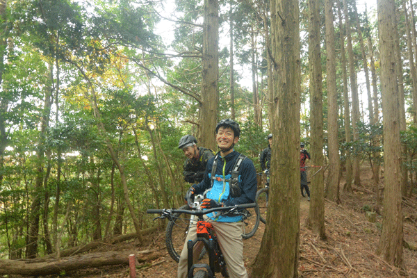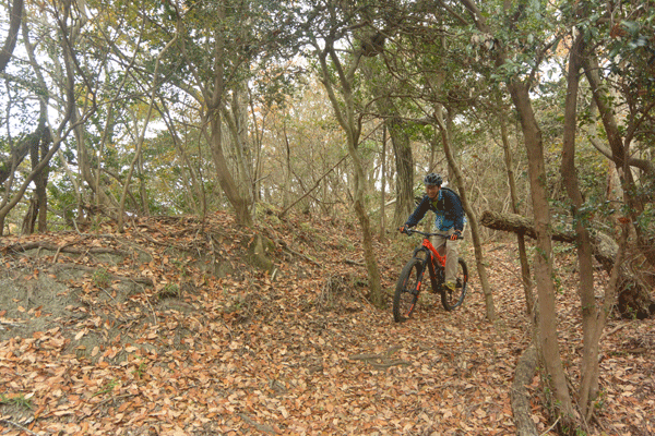 はじめはシングルトラックは登りなので、体力のある彼はなんやかや言いながらもしっかりついてきてくれました。足がついたときはちょっと悔しそうにしていましたが。