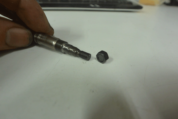 車に戻ってもう一度クランクに残った軸を見てみると、なんと先っぽが折れていました。