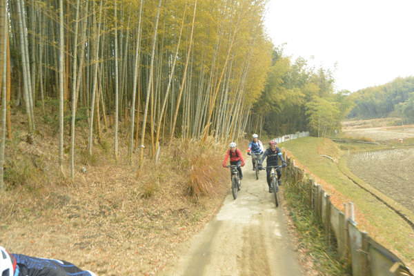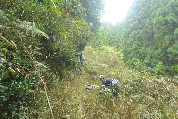 でも、MTBの本番はシングルトラック。そこでほえ面書かせてやろうという魂胆です。たぶんシングルにはいったら「こんなん無理っすよ〜」なんて言いよるやろな。わくわく。