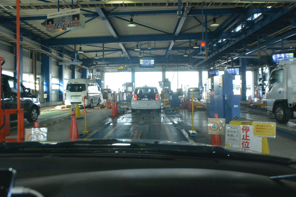 ドキドキしながら順番待ちをしていました。横に流れる電光掲示板の「ライトはロービームで検査します」の表示がいやがおうにも緊張感を高めます。