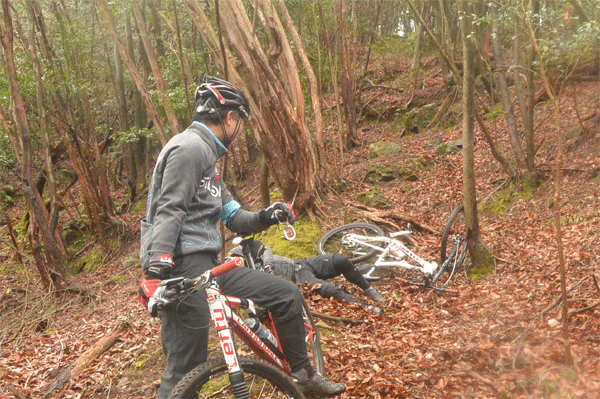 昨日の山は前日の雨でウェットでした。 ウェットの山は滑ります。とくに木の根っこ。 慎重に慎重にしんちょ〜に走ってもやっぱりツルっとしてしまいます。 またそれがスリリングで楽しいんですよね。 ロードで落車するとええぇ〜!となるけど、MTBで転んでもぎゃははは!で済むのでいいです。 昨日はいっぱい笑わせてもらいました。 でも、コースの最後に公園に出るのですが、川の護岸の石で思いっきり滑って吹っ飛んでいったのはちょっと焦りました。 まあ、メンバーはMTBもベテランでこけなれているので怪我はありませんでした。まあ、よく手をつかなかったもんだとちょっと感心しました。 ペダルは粉砕したけど。体が無事でよかった。